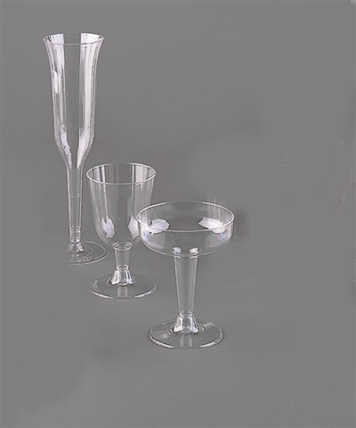 Our clear plastic 4-oz. champagne glasses come in: 10 packs of 40