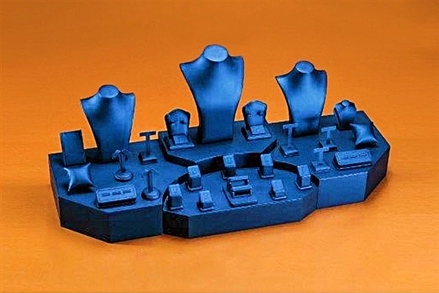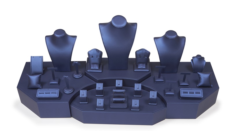 Our attractive Navy Blue Jewelry Showcase Combo measures 46 6/7 x 15 3/4 x 19