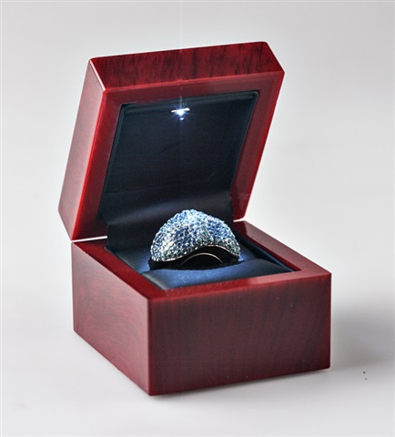Wooden Ring Box with Light  2 1/2″ x 2 3/16″ x 1 1/4″ 12 per pkg only $5.00 each  Available in: Black interior or White interior.